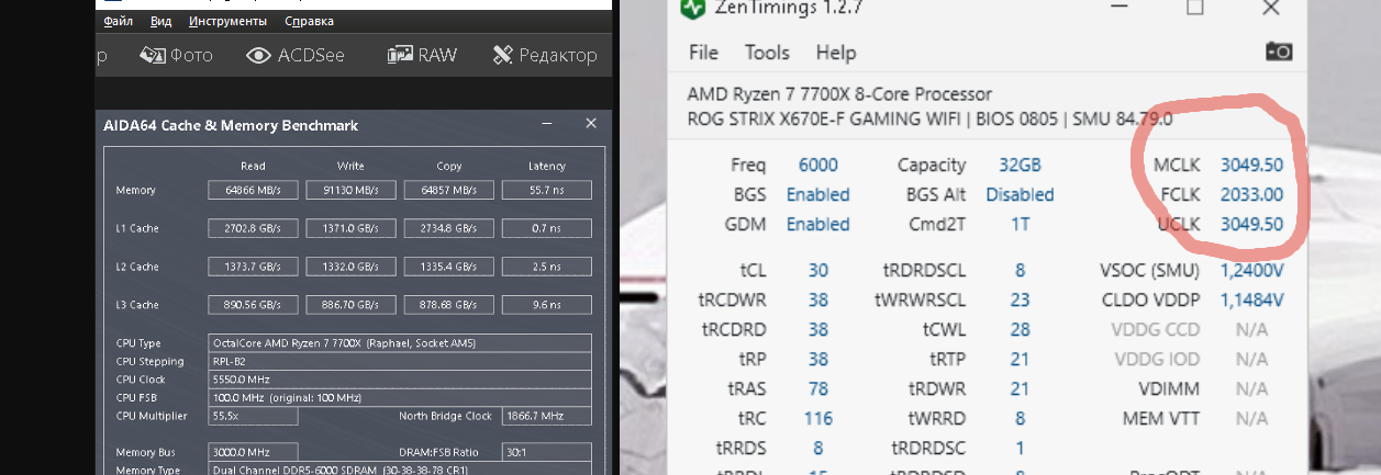 Shad2 Ха, понятно, я тоже с таким приколом столкнулся. Можешь не смотреть это видео, там тест проводился на версии биоса 8ххх. До 9ххх в Асусе есть косяк - ставишь fclk 2033 и делитель 1к1 - uclk и mclk начинают пахать 3050 - память в аиде показывает что 6000 мгц, а в зентаймингс пишет что память 6100. И по аиде задержки памяти чуть ли не 55 нс были, вместо 59-60 для 6000 мгц. начиная с 9ххх версий биоса асуса этот косяк поправили.