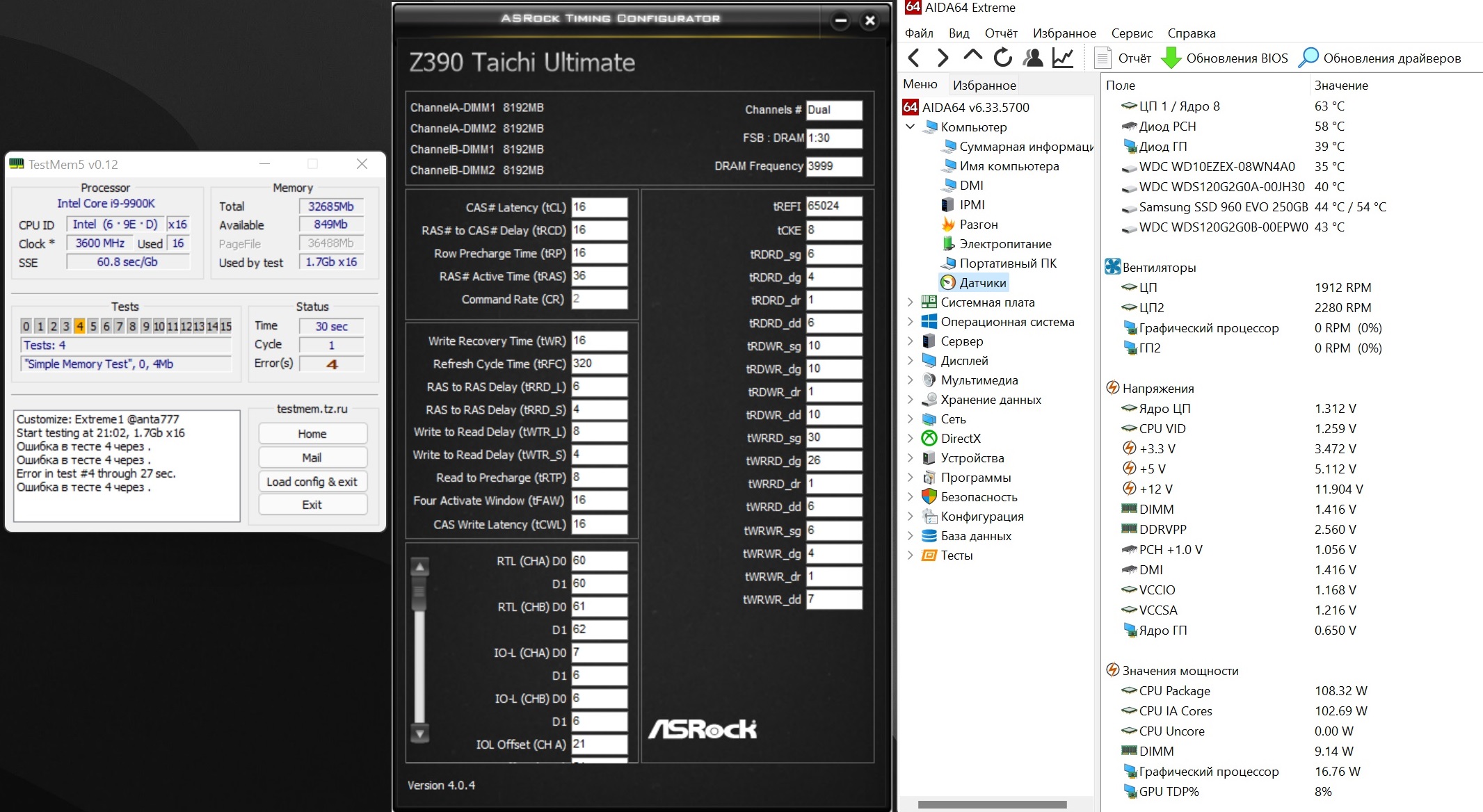Универсальный гайд. 0. Устраните любые потенциальные проблемы с другим железом. Снимите разгон с видеокарты, снизьте частоту цп на 300 с сохранением напряжения. Не забудьте вернуть RTL в авто если сейчас не авто. 1. Крутим очень короткий мемтест, то есть если минуту живёт сразу снижать тайминг дальше. Ищите не стабильность, а явно сбойное значение тайминга, запишите его - пригодится. Гораздо проще найти явно нерабочее значение и от него плясать чем пытаться ловить нестабильность часами. Это также помогает диагностировать сбойные тайминги на ранее "стабильной памяти". Не пытайтесь найти предельные значение сразу. Сначала скрутите до +2 от минимально стабильного. Многие тайминги идут параллельно поэтому бессмысленно пытаться скрутить до упора с первого прохода. CR выставить на 2 если стоит 1. В самом конце можно попробовать скинуть до 1. 3 Ставить только на очень большую частоту или если по другому ну совсем никак.