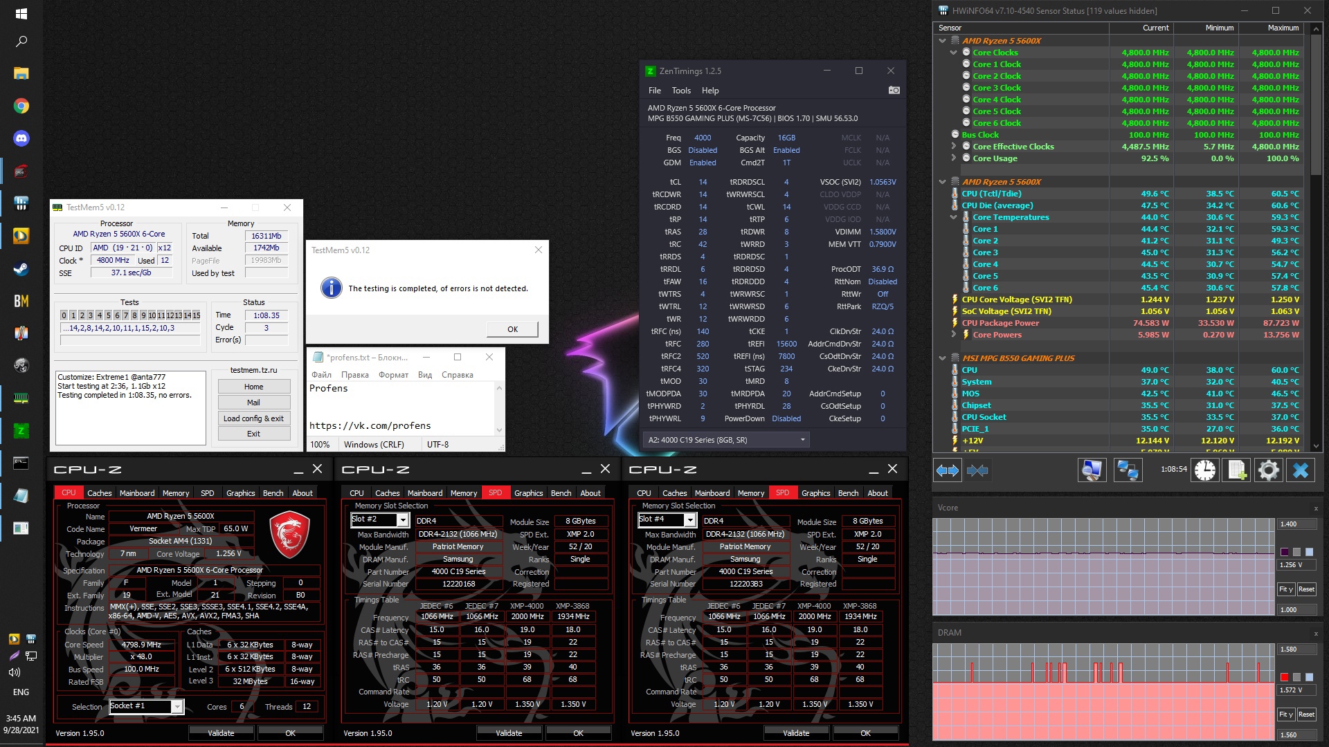 Напряжения на процессоре при разгоне памяти
