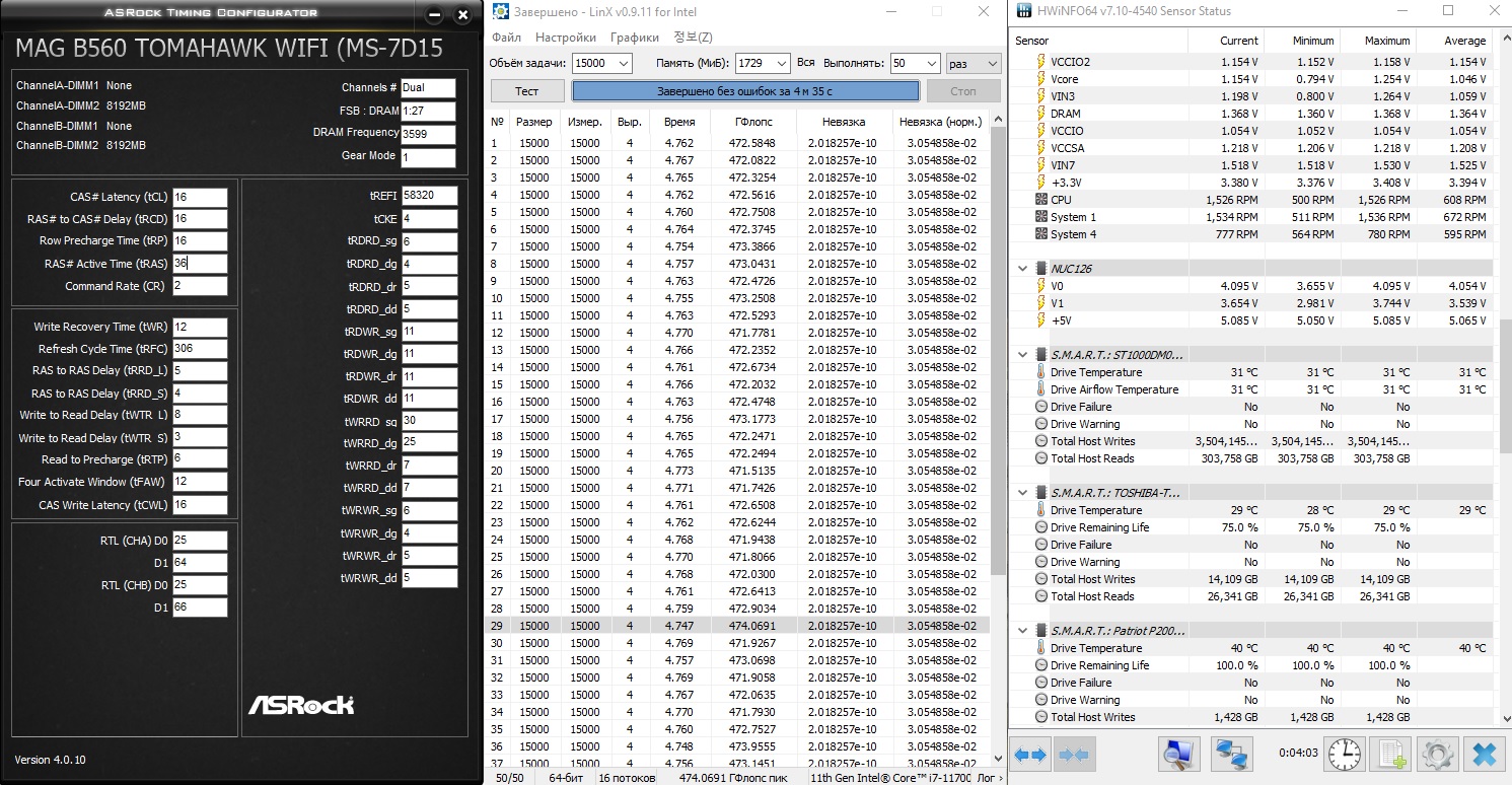 Перешел с райзена на 11700 и Z490, есть комп на 11500 и B560. На рязане память 4 планки по 32 гб, работала на 3600 спокойно, тут 3333 при гир мод 1. Явняк 11 серия дно для памяти).