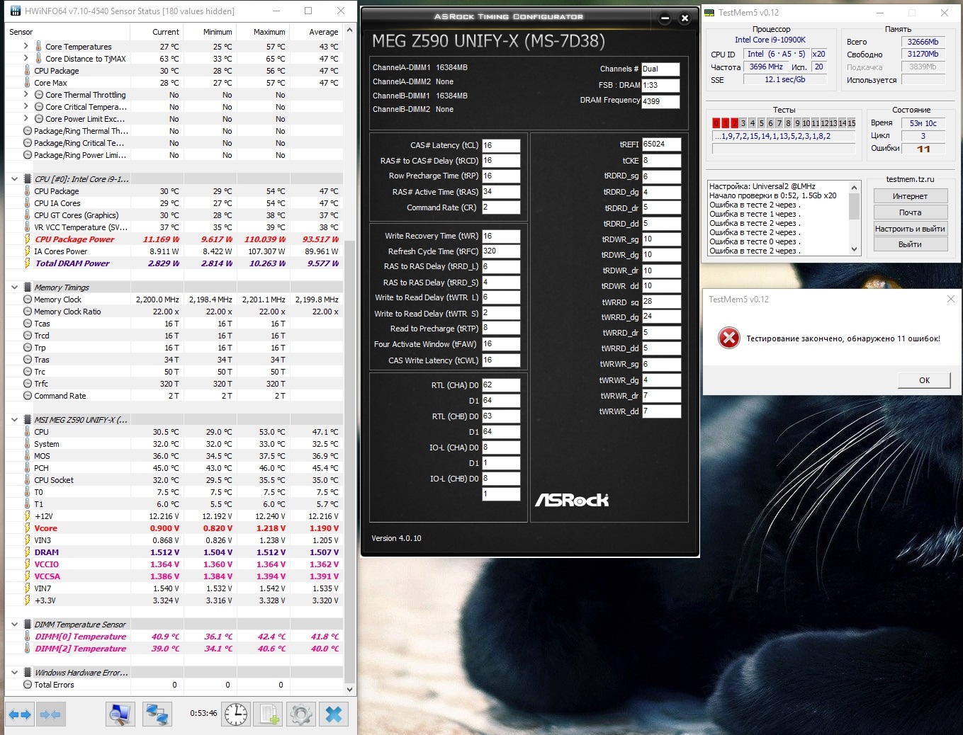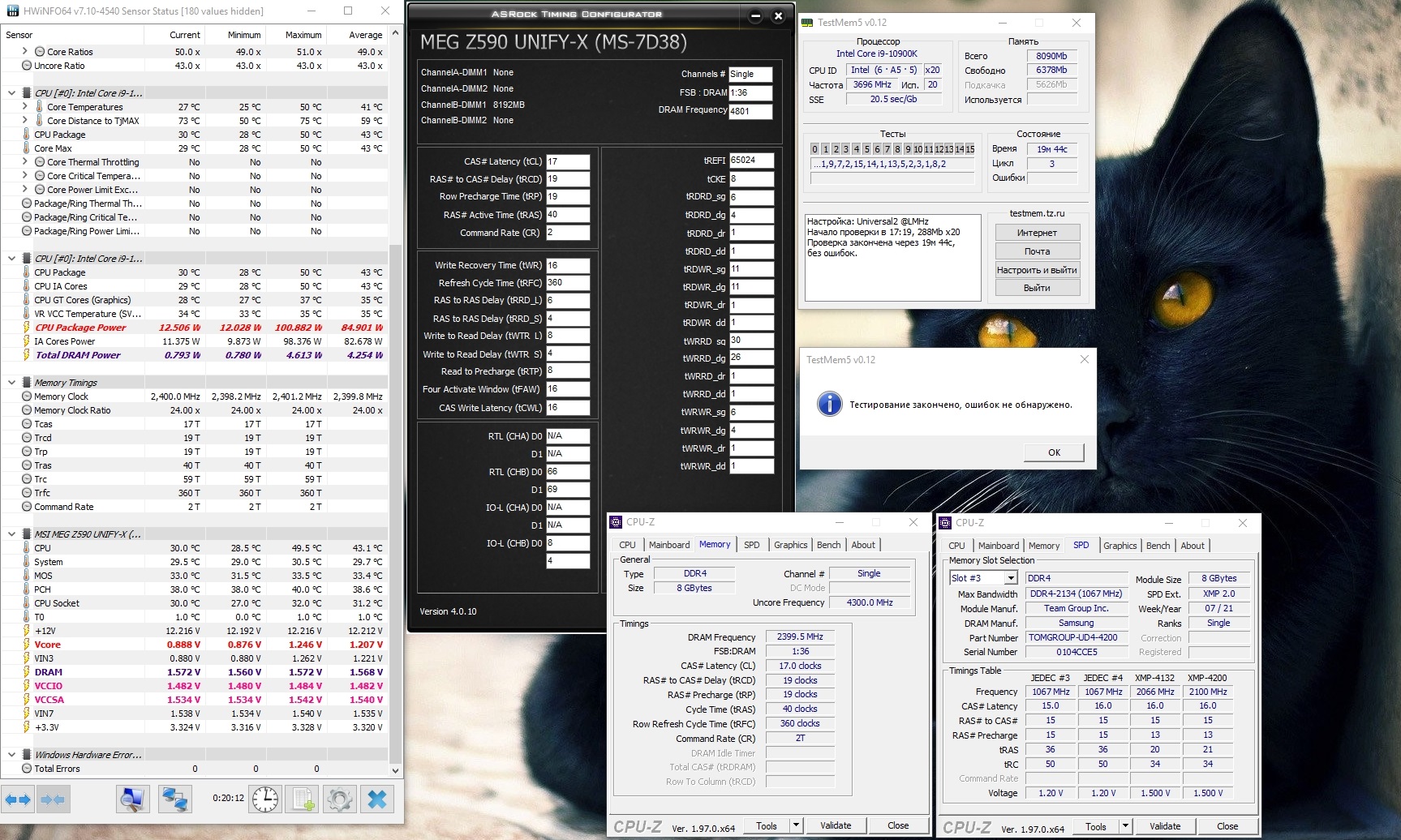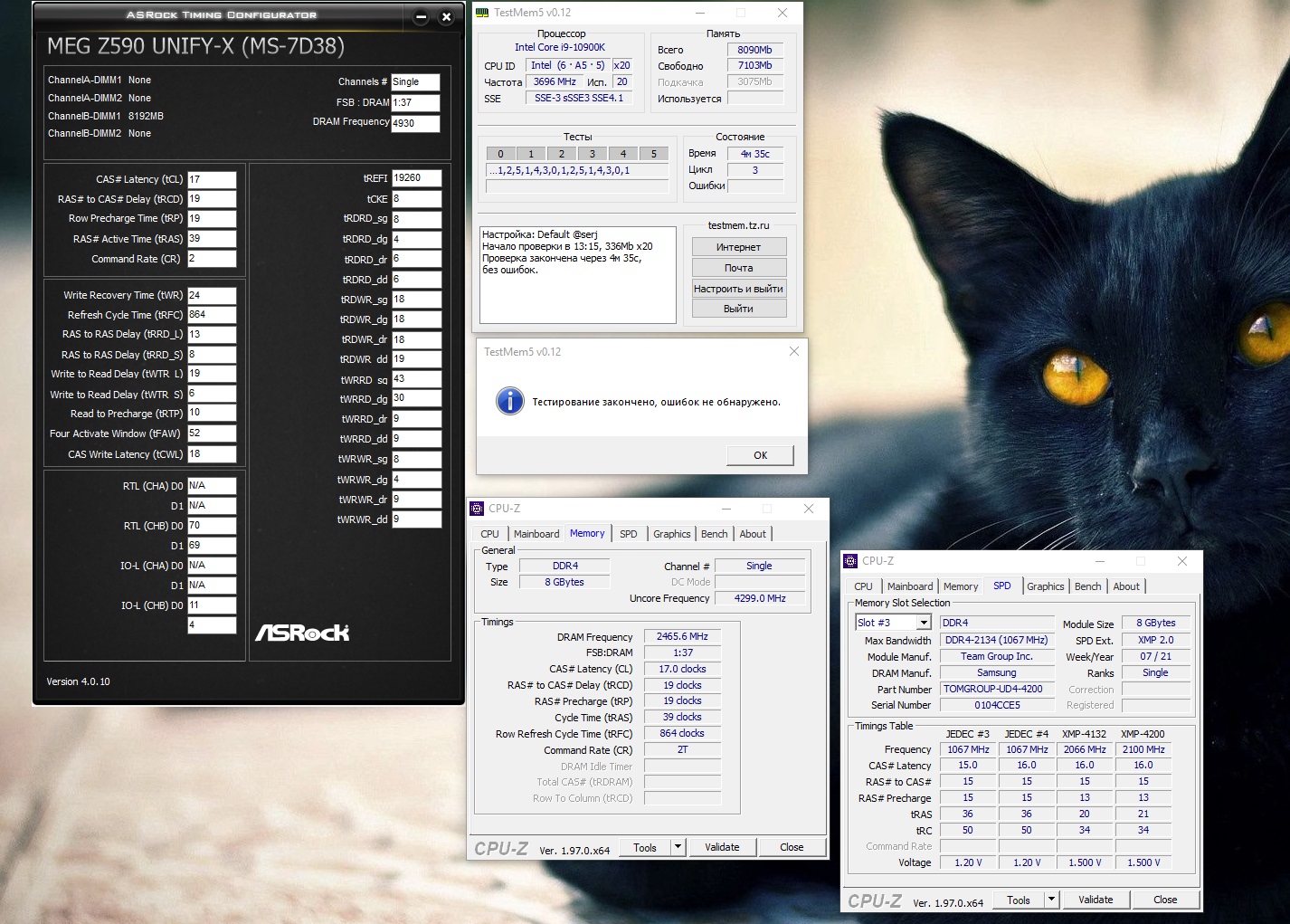 Может дело в z390 или КП проца помирает? Старая память работала нормально на 4ггц, но только на этой частоте и вниз и вверх уже не заводилась, хотя раньше я и на 4100 запускал. Вообще как-то тренировка не проходит, есть такое ощущение... Биос обновил, на дефолт сбрасывал...