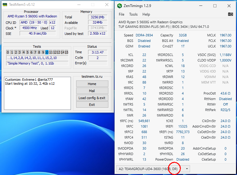 Проц сбрасываем в сток пока память гоняется.