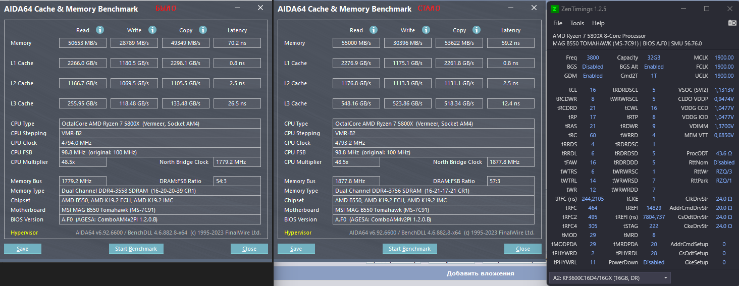 Просьба подсказать. На борту: MSI MAG B550 TOMAHAWK AMD Ryzen 7 5800X Kingston FURY Renegade [KF436C16RB1K2/32] 32 ГБ Разгонял с помощью этого гайда Есть смысл еще что-то улучшать, по-вашему мнению?