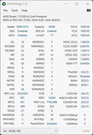 Моя конфигурация: AMD Ryzen 7 5700x MSI B550-A PRO A-DATA 64Gb (2 x 32Gb) AD4U2666732G19-SGN