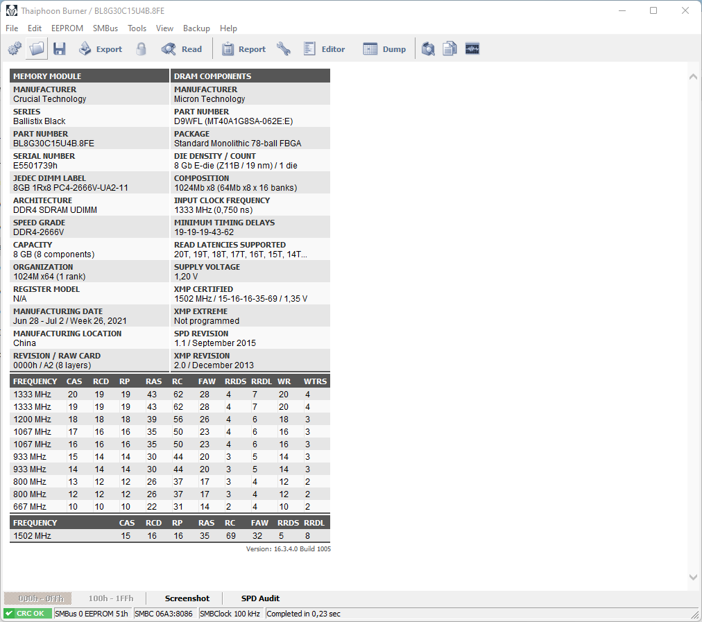 [img]Ссылка на скрин[/img] Для сбора статистики по установленным чипам памяти просьба прикладывать скрины программы Taiphoon Burner и указывать напряжения на DIMM, IO и SA![/color]