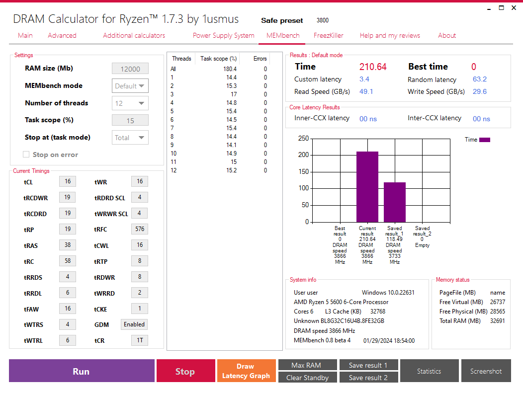 3466 выглядит стабильно. Без обдува в прохладном корпусе TM был пройден. Посмотрю, что будет с подогревом от ВК и начну либо скидывать дальше частоту, либо ужимать тайминги