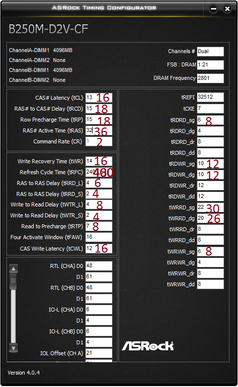 tRASmin=tCL+tRCD+2 WTRS/L устанавливаются в биосе через WRRDdg/sg согласно формуле: WRRD_sg=6+CWL+WTR_L WRRD_dg=6+CWL+WTR_S WR - через WRPRE (для матплат ASUS): WRPRE=4+CWL+WR RTP - через RDPRE (для матплат ASUS) RDPRE=RTP