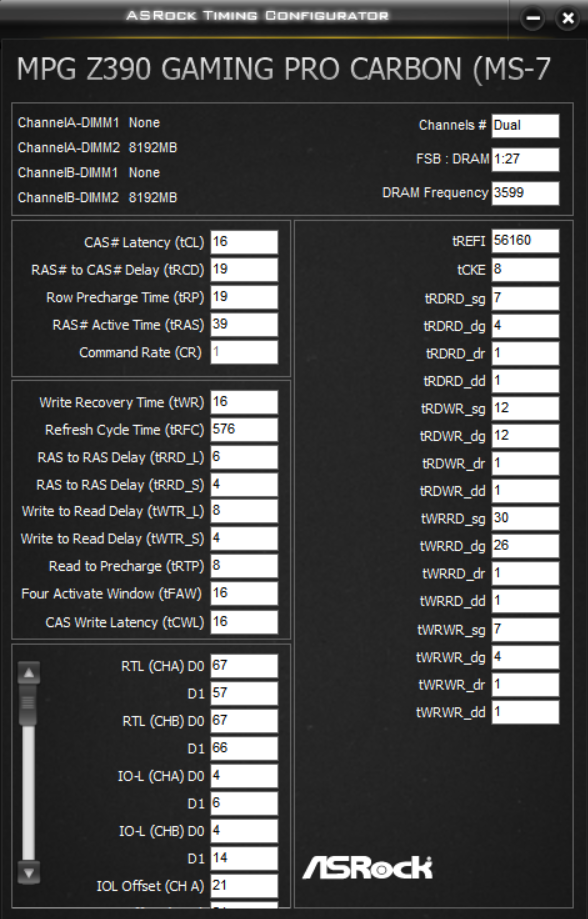 Below are the typical tRFC in ns for the common ICs: IC tRFC (ns) Hynix 8Gb AFR 260 - 280 Hynix 8Gb CJR 260 - 280 Hynix 8Gb DJR 260 - 280 Micron 8Gb Rev. E 280 - 310 Micron 16Gb Rev. B 290 - 310 Samsung 8Gb B-Die 120 - 180 Samsung 8Gb C-Die 300 - 340