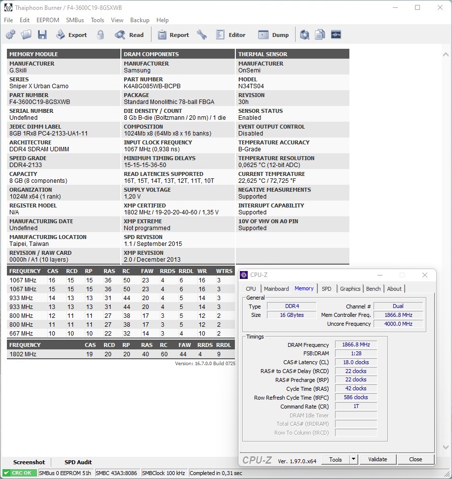 [img]Ссылка на скрин[/img] Для сбора статистики по установленным чипам памяти просьба прикладывать скрины программы Taiphoon Burner и указывать напряжения на DIMM, IO и SA![/color]