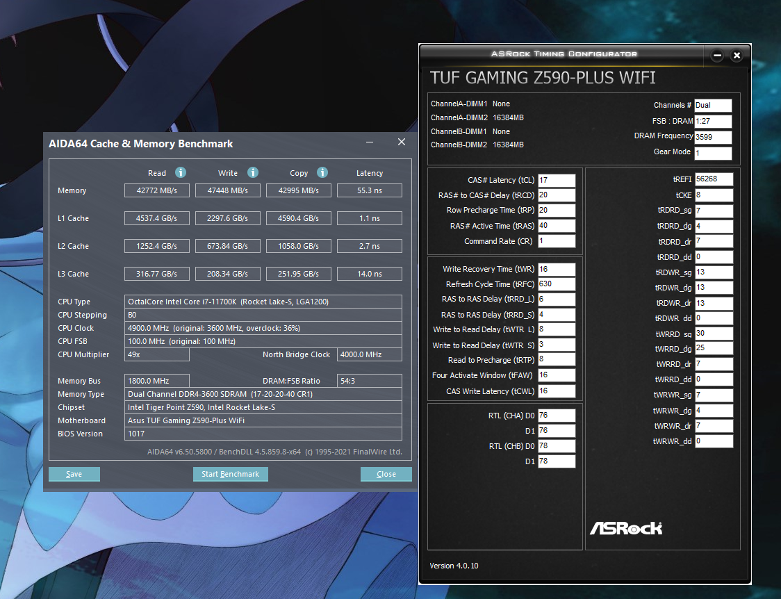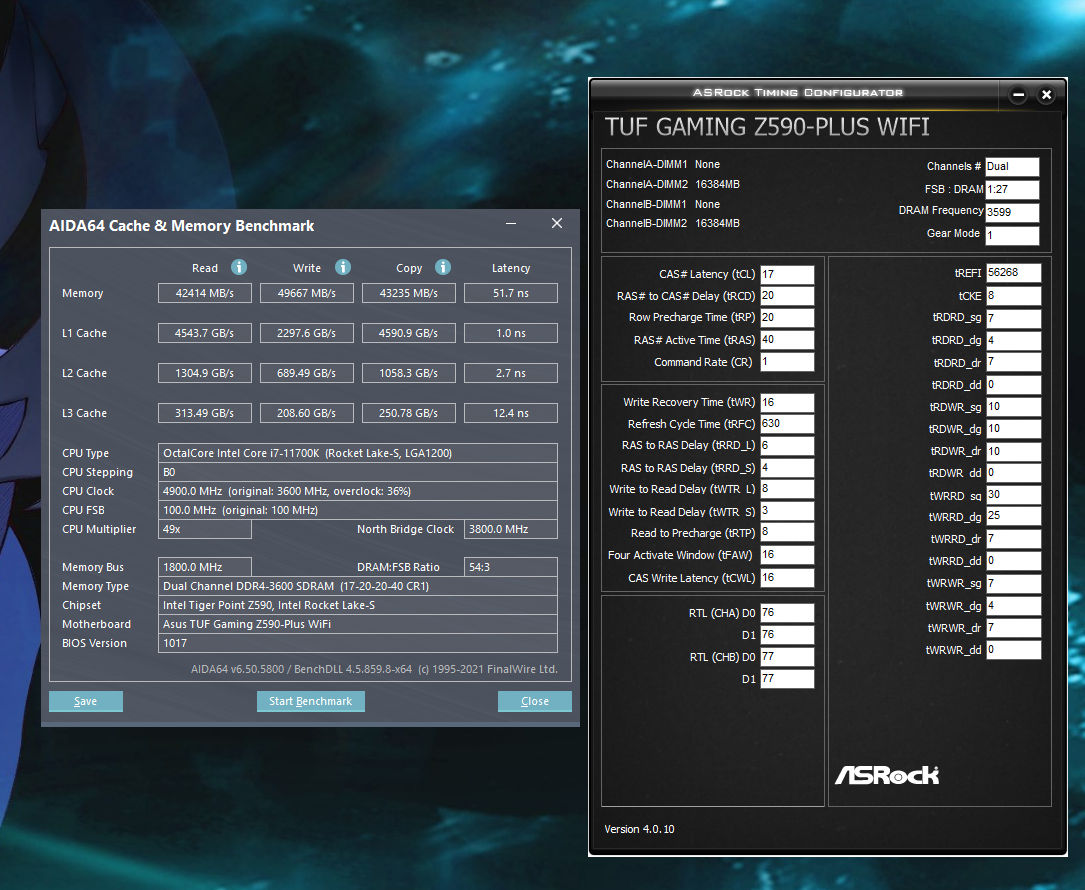 Доброго времени суток! Имеется память: 4 планки по 8 гб Crucial Ballistix BL8G36C16U4B.M8FE1 совместно с: i7-10700k и MSI MAG Z490 Tomahawk. Оптимизировал тайминги с помощью таблицы Anta777 03112020. Проходит TM5 c конфигами extreme и absolut.