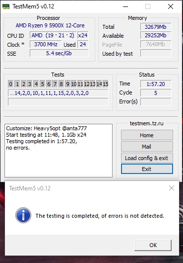 7. При желании протестировать память избыточным тестом в TM5 с конфигом 1usmus_v3 меняем количество 3-х циклов в "mt.cfg", "cycles=3" скажем на 8 или более