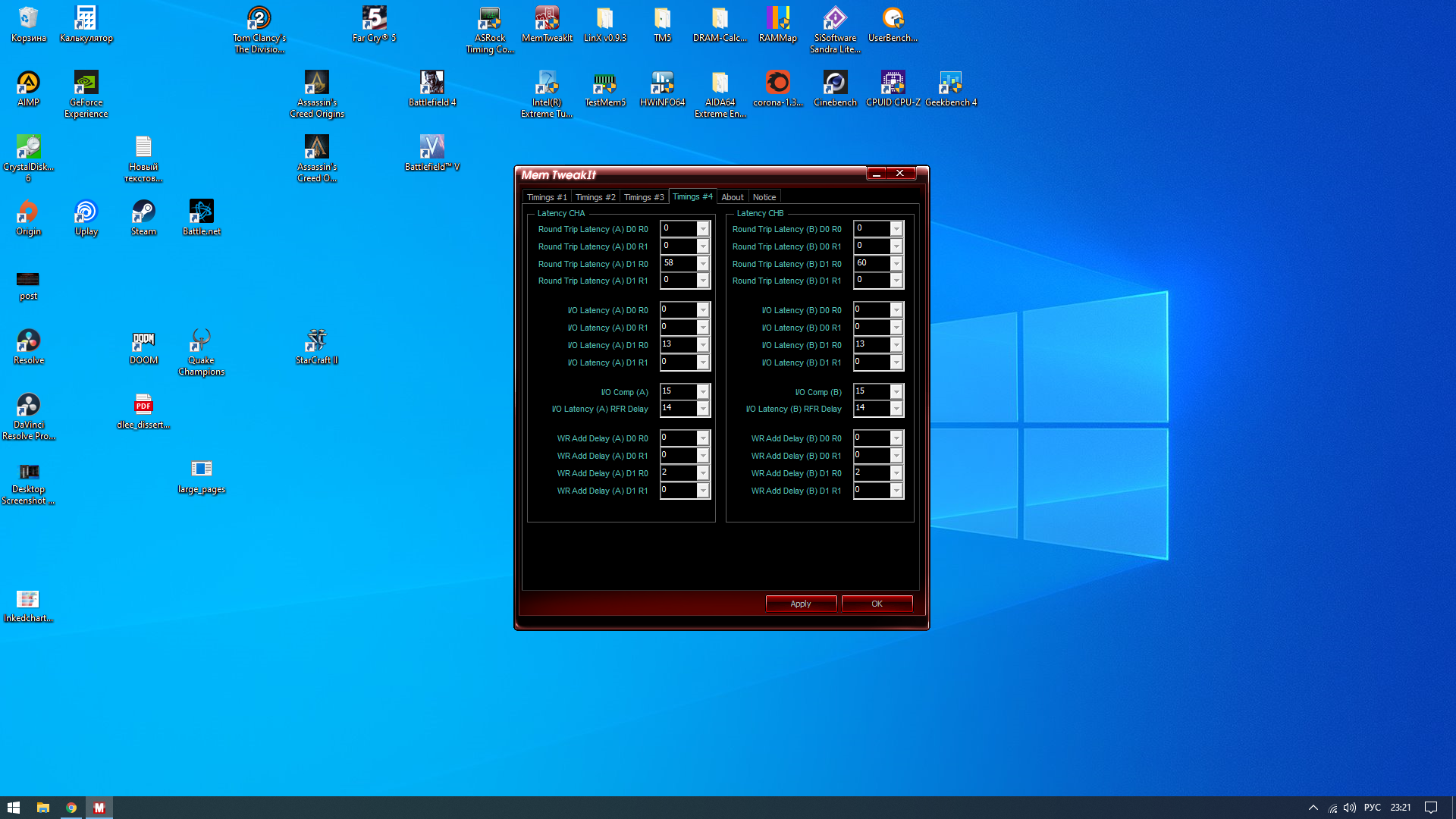 Решил поделиться своей борьбой с периодической нестабильностью своих b-die. Выяснил, что все тесты проходят до температуры 53-55 градусов по датчику на модулях - дальше вылетают ошибки. Так как увидел тут в теме информацию о влиянии trfc и trefi на температуру - решил провести тесты в своем приложении из-за которого все началось Quake Champions, делал тесты по 30 минут с таймингами 16-16-32 с trefi и trfc в авто и выставленными в 65535 и 300, сначала убрал trefi в авто - память прогрелась до 51-52 градусов. Потом и trfc в авто и память прогрелась до 51-52 градусов. Ну и напоследок выставил в 300-65535 и в итоге получил теже 51-52 градуса. Т.е. эти тайминги не влияют ощутимо на температуру модулей. Для статистики еще решил проверить влияние подсветки на температуру модулей и получил 1 градус разницы. Чтобы не ловить вылеты и не вешать охлад на память - решил попробовать снизить вольтаж и снизил до 1.325 и температура упала до 48-49 градусов и пока все стабильно.