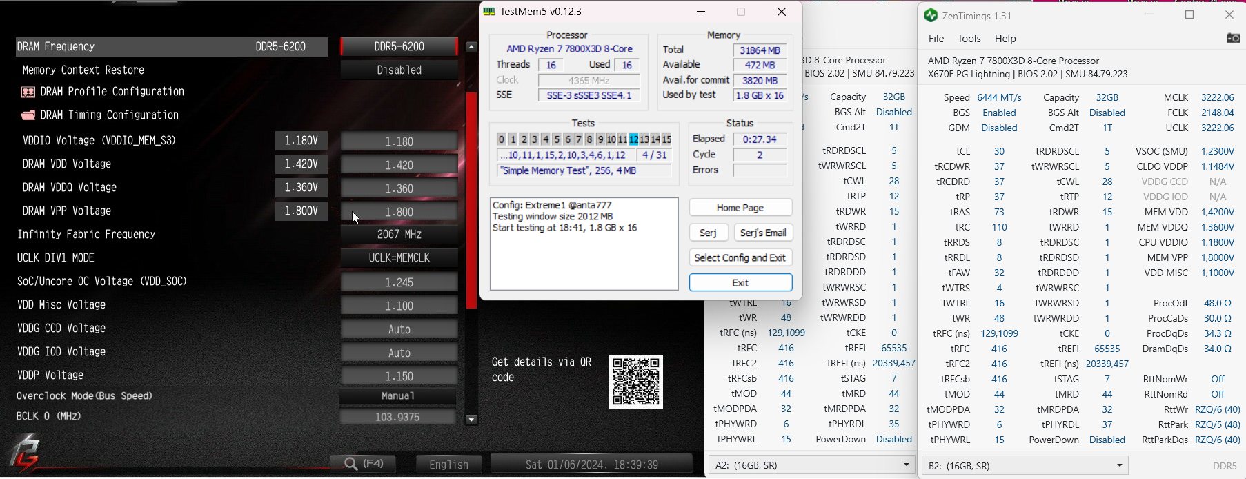 По поводу разгона DDR5 шиной на ASRock X670E Taichi: такой возможности нет, проверил на двух биосах, январском и мартовском. Видимо инженеры ASRock посчитали двойной разгон процессора (через курву и шину) слишком жирным для владельцев 7800X3D...