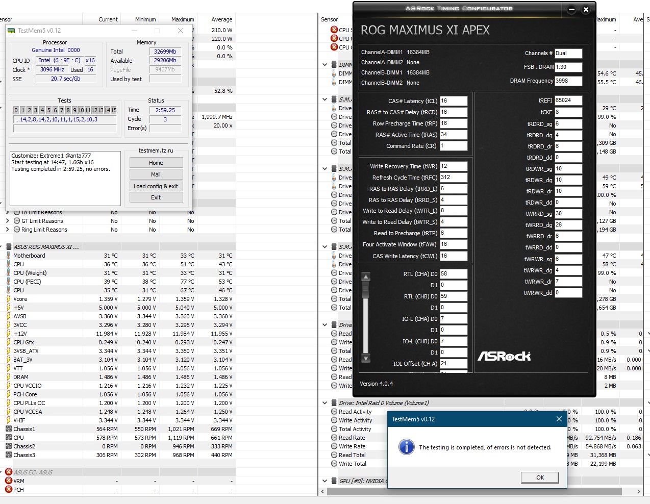 anta777 У меня если честно уже голова раскалывается. Подскажите пожалуйста по ошибкам. Ваш суперплайт память прошла без ошибок. Вначале настраивал первички, память не взяла 4000 cl17 даже на напряжении 1.45в. Выше не хочу поднимать.