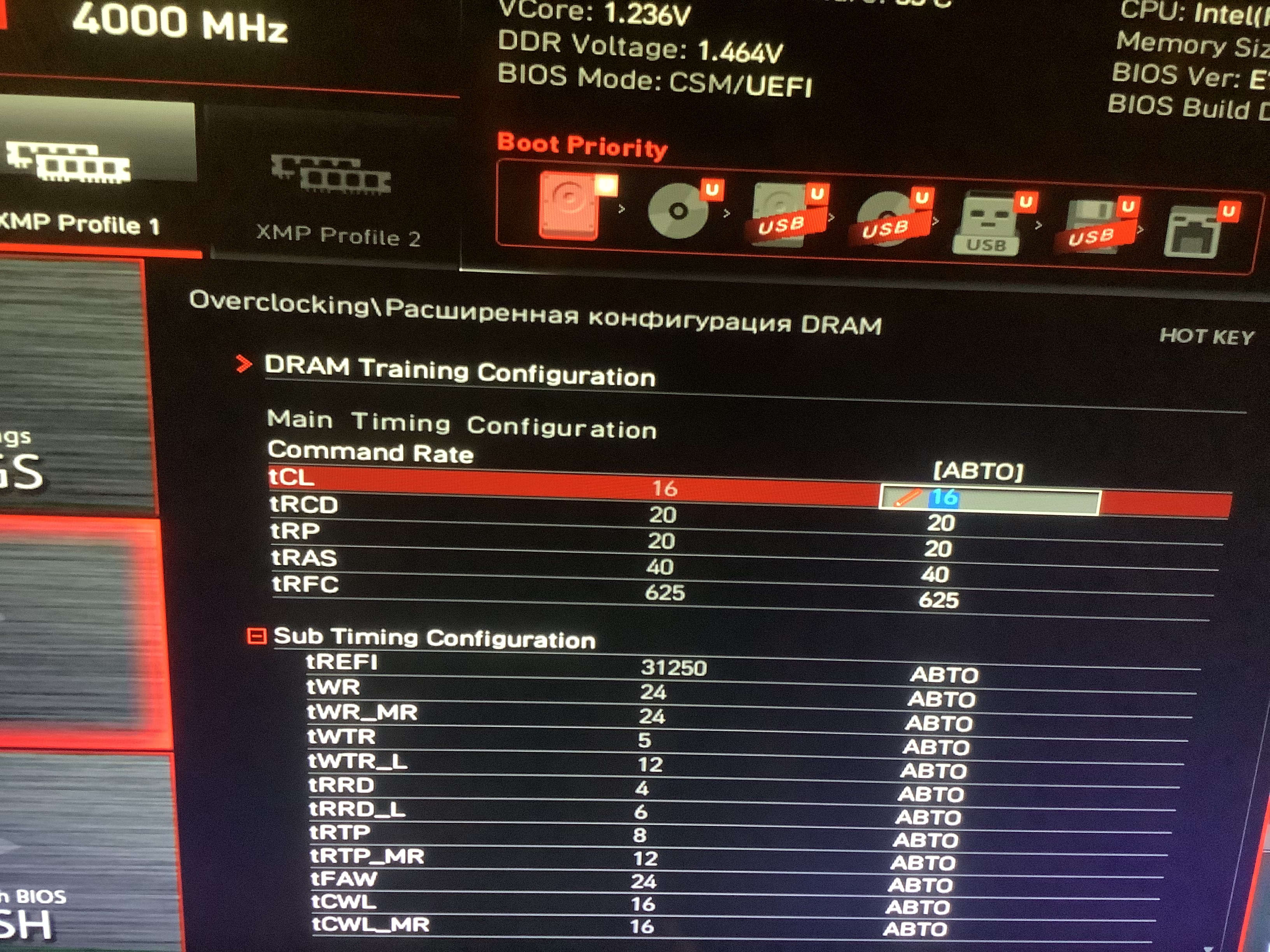Универсальный гайд. 0. Устраните любые потенциальные проблемы с другим железом. Снимите разгон с видеокарты, снизьте частоту цп на 300 с сохранением напряжения. Не забудьте вернуть RTL в авто если сейчас не авто. 1. Крутим очень короткий мемтест, то есть если минуту живёт сразу снижать тайминг дальше. Ищите не стабильность, а явно сбойное значение тайминга, запишите его - пригодится. Гораздо проще найти явно нерабочее значение и от него плясать чем пытаться ловить нестабильность часами. Это также помогает диагностировать сбойные тайминги на ранее "стабильной памяти". Не пытайтесь найти предельные значение сразу. Сначала скрутите до +2 от минимально стабильного. Многие тайминги идут параллельно поэтому бессмысленно пытаться скрутить до упора с первого прохода. CR выставить на 2 если стоит 1. В самом конце можно попробовать скинуть до 1. 3 Ставить только на очень большую частоту или если по другому ну совсем никак.