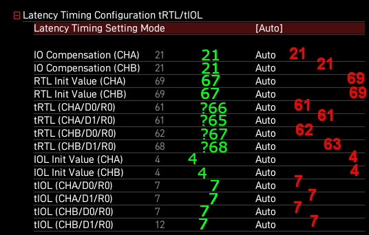 Если с числами 21, 4 и 7 все совпало и понятно то с параметрами RTL Init Value (CHA\CHB) и tRTL (CHA\CHB\D1\D0\R0) не совпадают и не понятно в правильное ли я место в таблице посмотрел.