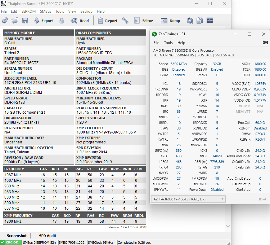как выше сказали - проценты, но увеличивая частоту приходится накидывать на контроллер. А это дополнительное тепло и нагрузка на систему питания. У меня хоть и ехала память на 4533МГц с 5700G, для х3d выбрал вариант в тайминги. 17nm DJR если верить тайфуну получились при 3200 так :