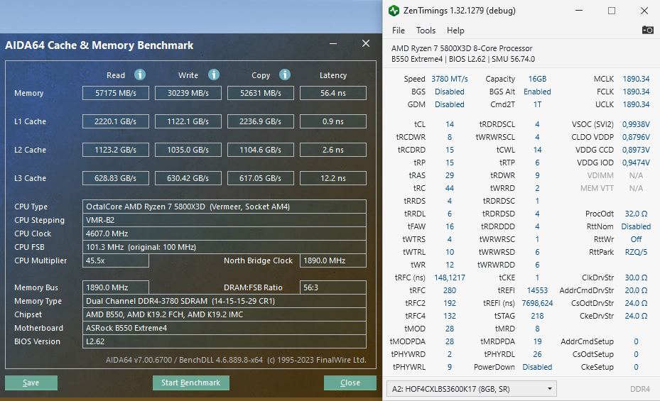 Минус 0.3 нс latency уж точно не стоят повышения Vdimm с 1.446 до 1.512V (чипы в планках HOF на самом деле не вывозят tRCD 14 @3800 даже при таких напругах, поэтому сравнение скорее с 14-15-1T)