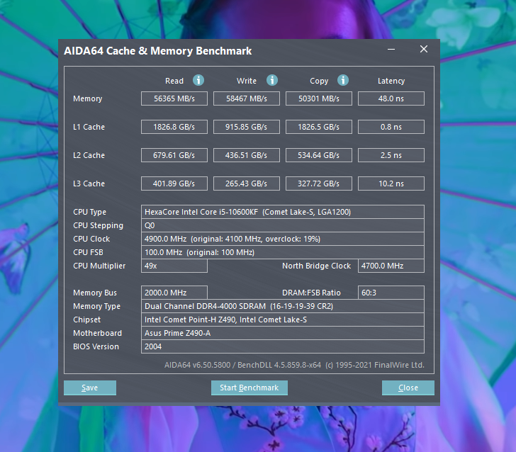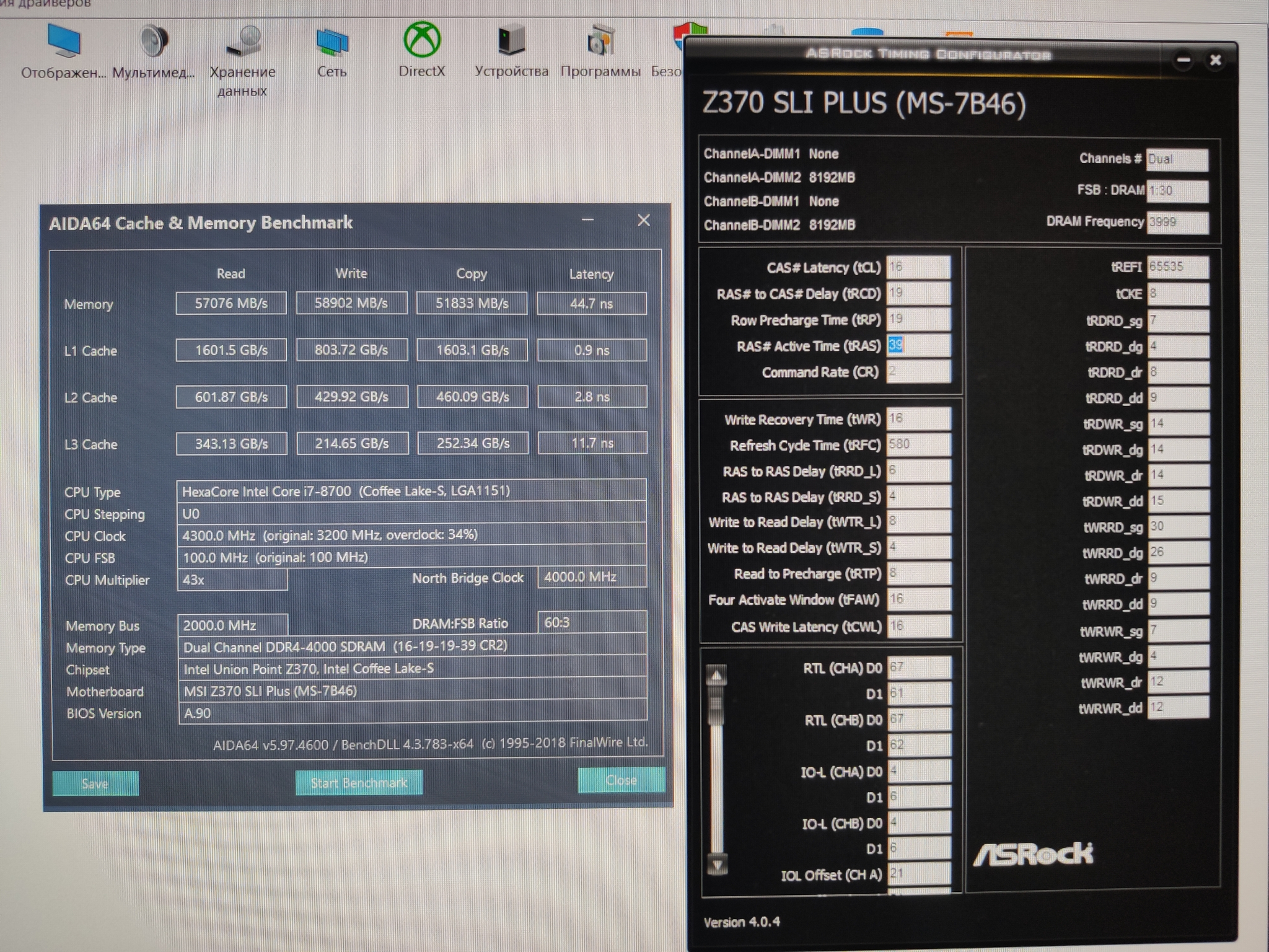 Отписываюсь о смене множителя памяти с авто на 100:133. Сначала вылетел код ошибки 24, естественно при таком множителе нельзя установить частоту 3900, можно 3866 и соответственно 4000. Ну да ладно, тут я тупанул. Скинул биос, выставил частоту 4000Мгц и память без проблем запустилась на настроенных ранее таймингах, без поднятия напряжения(1.4в). Ранее для 4000Мгц, нужно было 1.48в. Единственное, тренировка опять стала 59/61 и 6/7. Мать выставила тренировку с первого раза и более не меняла. Выровнять как было 59/60 и 6/6, не получилось никак, на изменения таймингов реакции нет. Только хуже. Запустил ТМ5 с пресетом универсал, через 15 минут память нагрелась до 61.8г и вылетела ошибка, возможно из за температуры. Тест прекратил, жду охлаждение. По Аиде, поднялись запись с 60400 до 61700 и копирование с 57400 до 58600, латентность не уменьшилась, около 40.6 В фотоворкс попугаи выросли на 1000, с 36500 до 37500, цифры без копеек, скриншоты не делал. Но блин запустилась же на 4000Мгц, причём на заметно низком напряжении. По синтетике конечно ни о чём, но на душе приятно. Множитель памяти реально рулит.