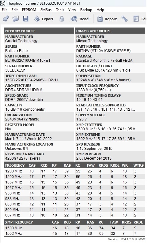 Привет. Получил с али balistix 2x16gb 3200XMP двуранговые. Возникла проблема с их разгоном: на 3400 не едут совсем, максимум что удалось, это 3333mhz 16-18-18-36 на 1.36v без ошибок по anta777 за 3 часа. (вторички и третички не трогал) Кто имел дело с такими чипами, подскажите пожалуйста, это фейковые балики или же просто шлак попался?