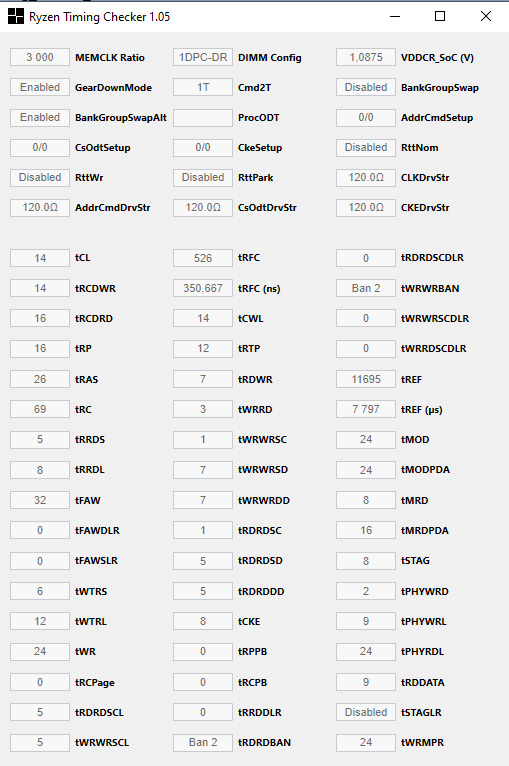 нет, я про trcdwr. tras hwinfo у меня показывает значение 21, значит скорее всего так и есть, а вот значение trcdwr мне не посмотреть, ryzen timing checker не запускается.