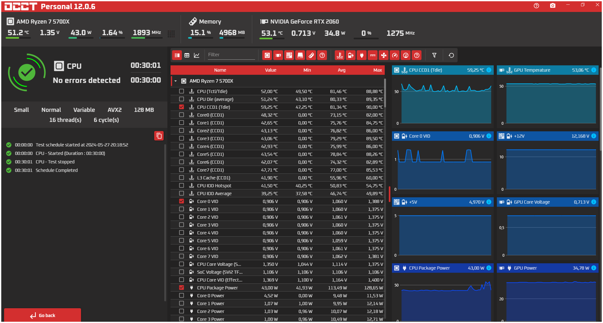 Добавлено спустя 18 минут 25 секунд: если все нормально, затем снизь вольтажи VDIMM 1.42 VSOC 1,1 CLDO VDDP 0,900 VDDG CCD 0,975 VDDG IOD 1,025 прогони сначало тест оост, если есть ошибки поставь CLDO VDDP= 0,925 или VSOC= 1,125 если ошибок нет анта экстрим прогони, а завта тайминги еще подожмем