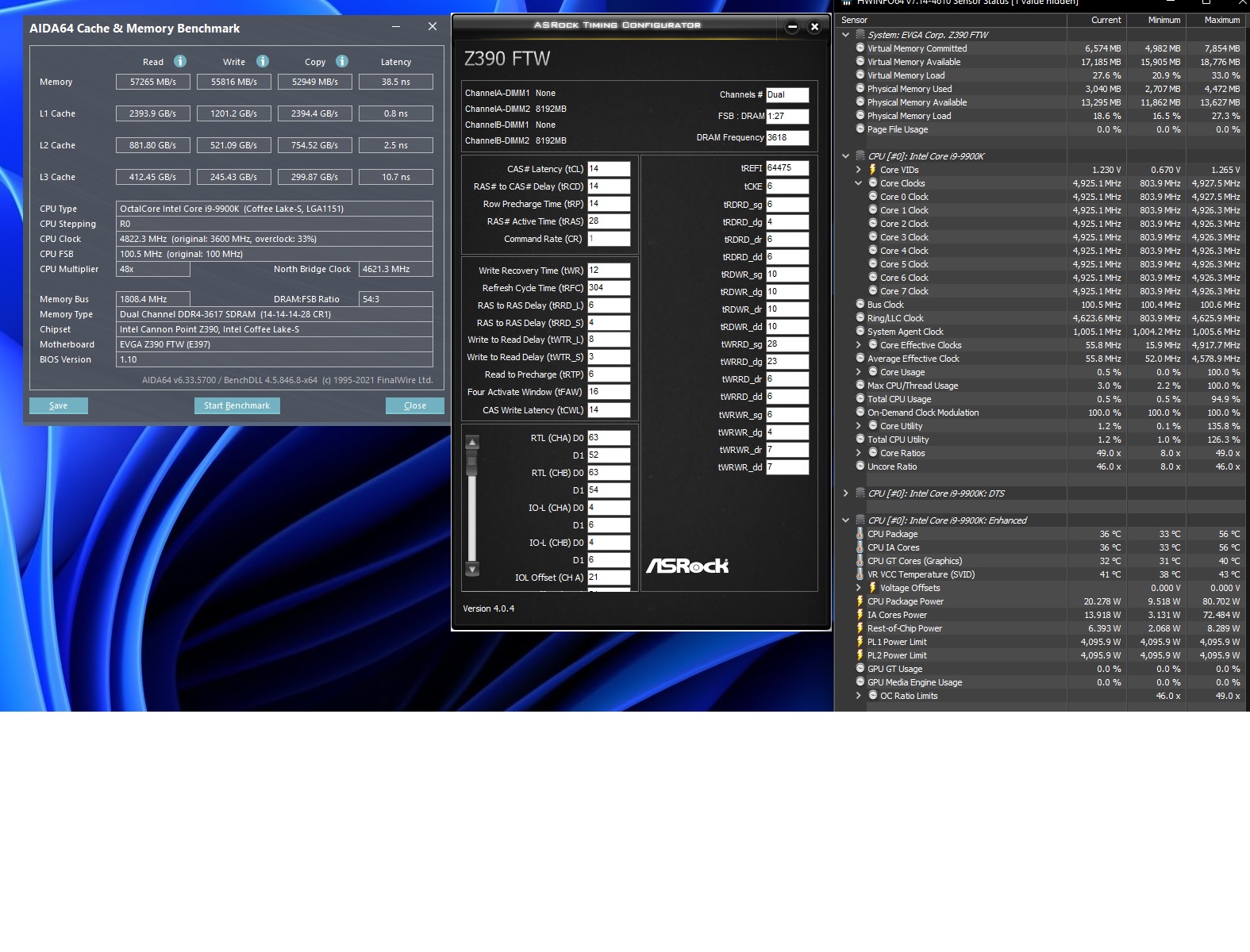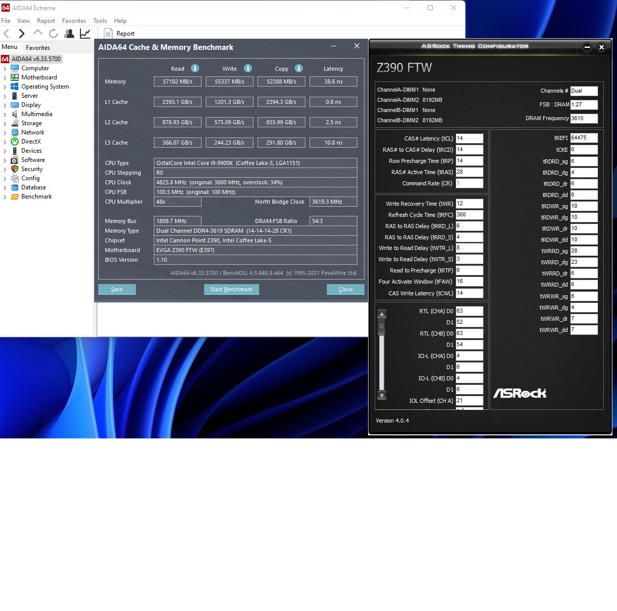Профиль-в подписи. Приобрел по случаю пару Patriot 2х8Гб 4400МГц 19-19-19-39 на B-Die, свежие - 22 неделя текущего года. Начал настройку с низких частот. Базовая частота у меня 100.5МГц, так удобно для ЦП. В итоге 3620МГц без проблем завелись на 14-14-14-28-1Т. Напряжениями пока не особо игрался: выставлен штатный максимум для памяти 1.45v и 1.20 SA=IO. 40 минут отбегал testmem. Скрин с производительностью в AIDA прилагаю. На 3720 тоже может 14-14-14-28, но уже CR2. Тестил, правда, минут 15. 3750МГц выдает ошибки в первые 10 минут. И все, казалось бы, хорошо, потенциал у чипов, вроде как, должен быть. Да вот только сколько не бился, даже на 4ГГц не смог стартовать ни разу. Выставлял основные и вторничные таййминги из таблицы https://docs.google.com/spreadsheets/d/ ... =438551003 22-24-24-52-2Т. Тайминги третьего порядка - на авто. Даже с делителем на 3800 не стартует. Вчера, казалось бы наметился прогресс. Взял тайминги из таблицы от Anta777 для интела под частоту 4133: 18-19-19-39-2Т. Остальные также из таблицы. 1.45v на память, 1.2-1.25-1.3 для SA/ IO (применял по порядку. Изменений в поведении матплаты не обнаружил). Начал с 3700 и шел по делителям ввверх. 3733-ок; 3800-завелось без проблем; 3866-также. На 3900 (=3920) плата стартовала минуты две, но завелась. Сохранил профиль в биос, поскольку следующий делитель уже 4000. Естественно, не завелась, ждал минут 5. Safe boot на плате отсутствует, любой затык-приходится сбрасывать биос и загружаться с профиля. Загружаю профиль с 3900, и нифига, не грузится. Тот же профиль, снижаю частоту до 3800-опять не грузится. Напряжениями игрался, BClk на номинал снижал-ноль реакции. В итоге, пока доковырял тайминги по снижению под 3620МГц и сижу с этими настройками. До чего беспроблемный был Micron E-die из подписи, до того непонятный Самс B-Die на плате EVGA. Микрон отлично стартовал на 3800, т.е. 3820МГц результирующих CL16 CR1 1.35v и 1.10 SA=IO, и был прочти стабилен, играть можно было. Поделитесь, пожалуйста, соображениями по данному вопросу. PS думаю, не нужно упоминать, что оба варианта XMP были безрезультативно опробованы.