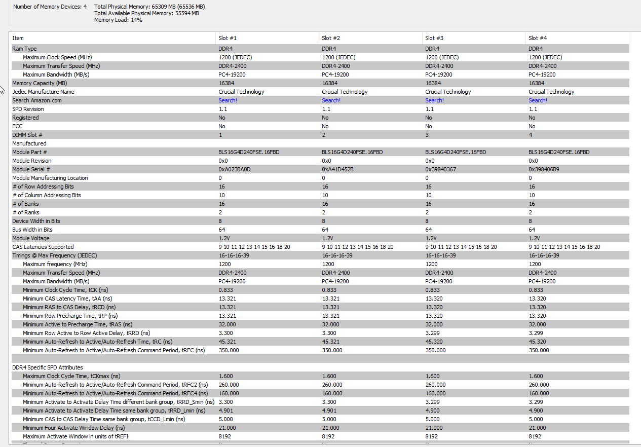 Разгон памяти у современной DDR4 (16 банков,RRDS=4,FAW=16,BL=8) эффективен только при tRC<=64,если каждый новый блок чтения происходит с разных банков памяти. Для 4-х слотовых плат при разгоне желательно в биосе отключить неиспользуемые слоты. Для максимальной производительности памяти значение tRFC в тактах для 8-Гбитных чипов должно быть кратно 8,а для 16-Гбитных чипов - 16. Если это правило не соблюдать, то будут вставлены лишние такты при каждом цикле обновления памяти. Для желающих максимально снизить tRFC. Делим tRFC на сумму tRCD,tRTP и tRP. Если результат ближе к 4, то снижать tRFC можно по 4 такта. Если результат ближе к 2, то снижать tRFC можно по 2 такта. Это связано с тем, что обновление происходит субмассивами, которые обязательно кратны 2.