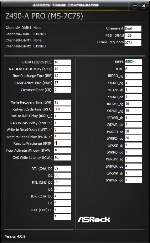 anta777 качал эти таблицы уже все, частично делал по ним, но там не все тайминги вроде бы выставляются. тайфун чет стал писать ошибку в контрольной сумме и зависать стал)) Эта таблица мне советует нереально огромные первичные тайминги при 3733 CL 19 и RCD 21, а у меня едет на 16 19, поэтому как дальше делать в таблице под мои рабочие тайминги я хз.