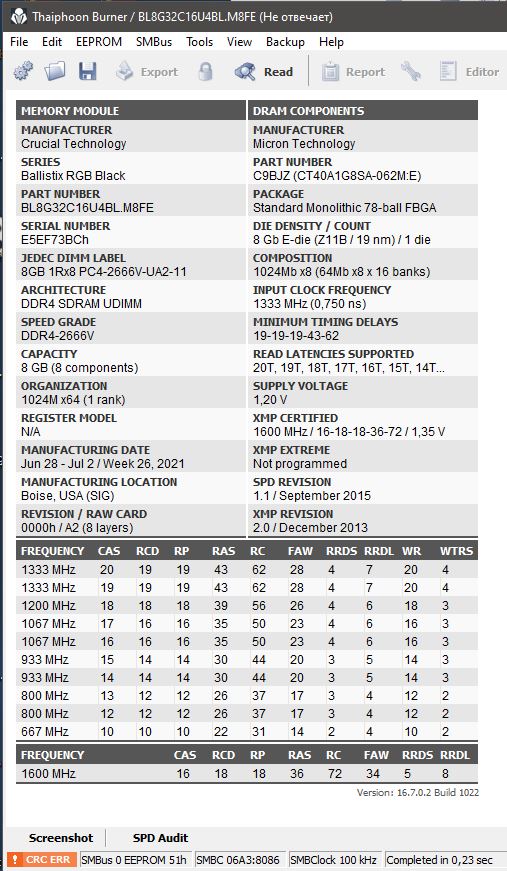 [img]Ссылка на скрин[/img] Для сбора статистики по установленным чипам памяти просьба прикладывать скрины программы Taiphoon Burner и указывать напряжения на DIMM, IO и SA![/color]