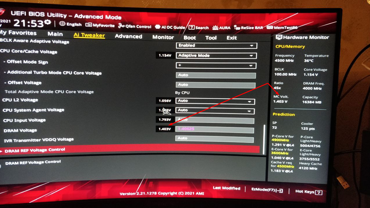 всем здравствуйте имею 11400 процессор и поставил сейчас память на 2933 MHz , мать - MSI b560m Mortar напряжение 1.35V на память и система сама в авто поставила такие напряжения VCCIO - 1.05 VCCSA - 1.20 есть ещё VCCIO2 - 1.21