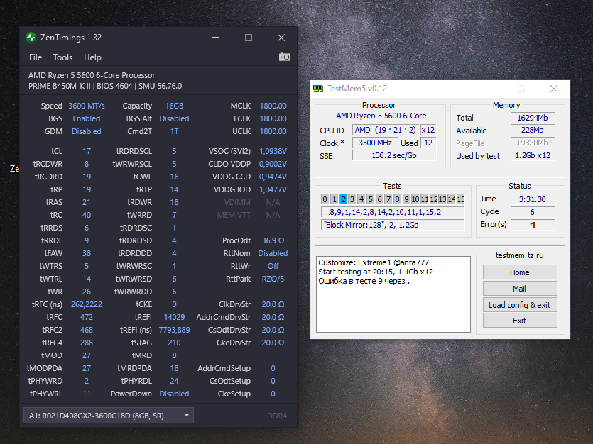 у меня час тоже без проблем и на 3733) а вот на истечении третьего все лезет , тем более у вас апушка. все остальное оставить как есть ? p.s снизил напряжение до 1.33 и trfc до 480 , 3 часа , без ошибок , но тест не остановился . это норма? до этого это вызывало ошибки. testmem 0.13.1 anta777extreme p.s.s testmem 0.12 anta777extreme ошибка менее получаса