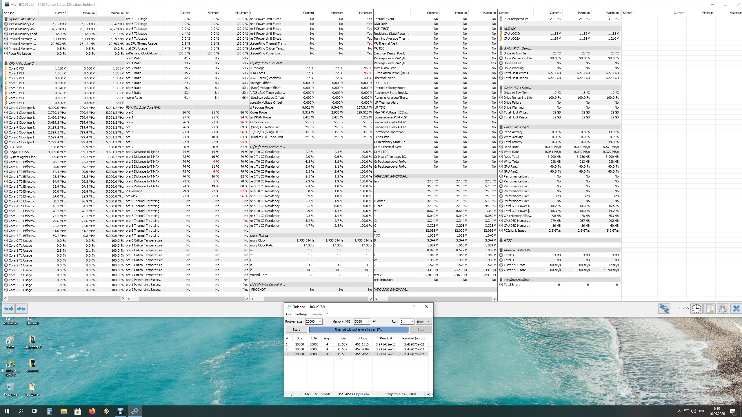 90° при 182W потребления - явно нужно задуматься о улучшении охлаждения. процессор видимо не скальпирован... ни о каком проходе линХ, тем более при 5000Гц, можно не мечтать.