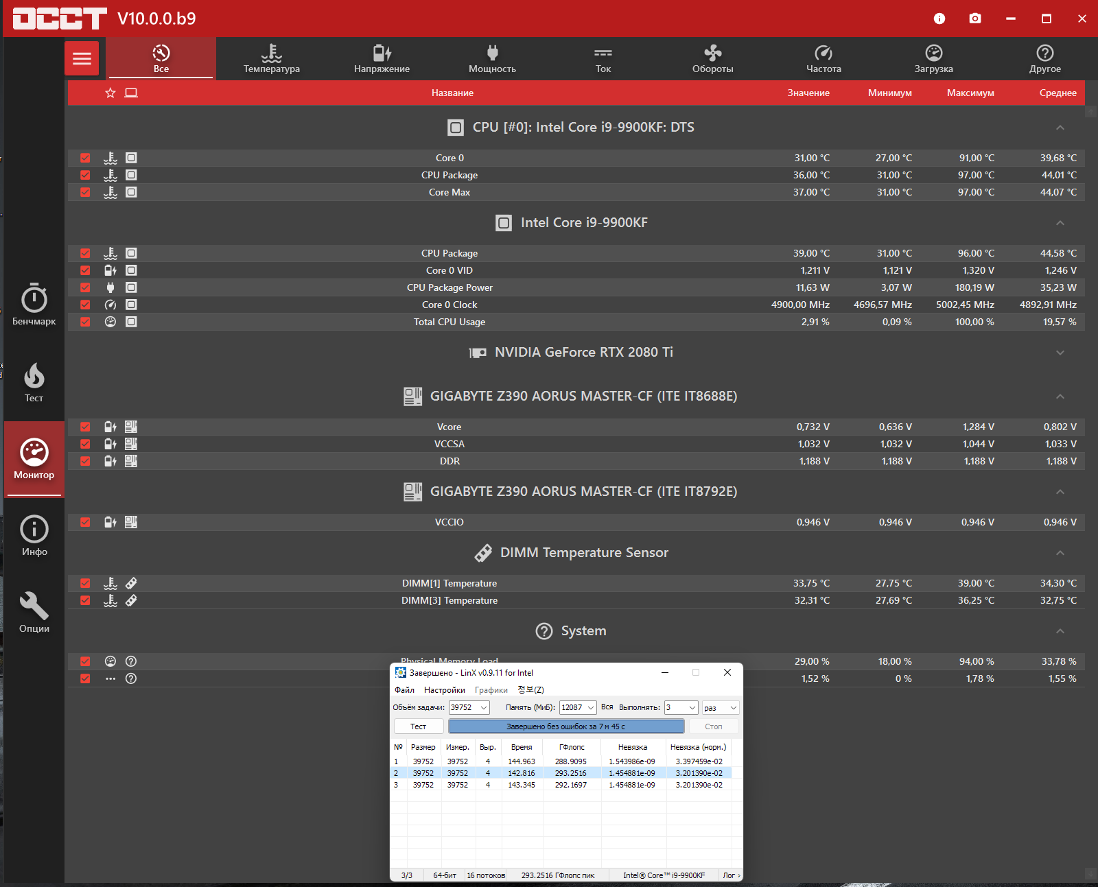 Хм. У меня этот линкс 0.9.11 показал примерно 390 флопсов. А запуск линпака от этого же линса с примерно таким же размером задачи 40000 примерно 440 флопсов. Странно. Мощность примерно одинаковая 186-193Вт (лимит 196Вт). Как вы вообще выше 450 флопсов на воздухе получаете? У меня noctua d15 не справляется. Чудодейственным андервольтом?