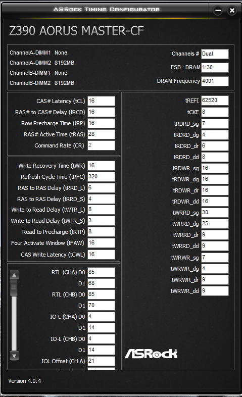 CPU Name: Intel® Core™ i7-7740K CPU @ 4.30GHz Motherboard Model: MSI X299 GAMING PRO CARBON AC (MS-7A95) Total Size: 8192 MB Type: Single Channel (64 bit) DDR4-SDRAM Frequency: 2750 MHz - Ratio 1:31 Timings: 21-31-31-63-2 (tCAS-tRC-tRP-tRAS-tCR) Slot #1 Module: G.Skill 8192 MB (DDR4-2137) - XMP 2.0 - P/N: F4-3200C14-8GVR