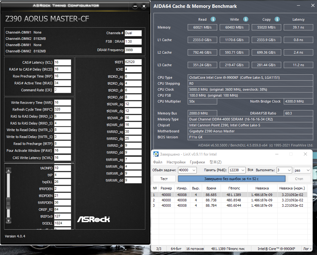 По скорости уже терпимо. Но далеко не идеал. Я бы ещё третичные тайминги попытался подтянуть и в норму привести, там косяков полно. Почему tRDWR разные??? Память на частоте 4200 не едет?