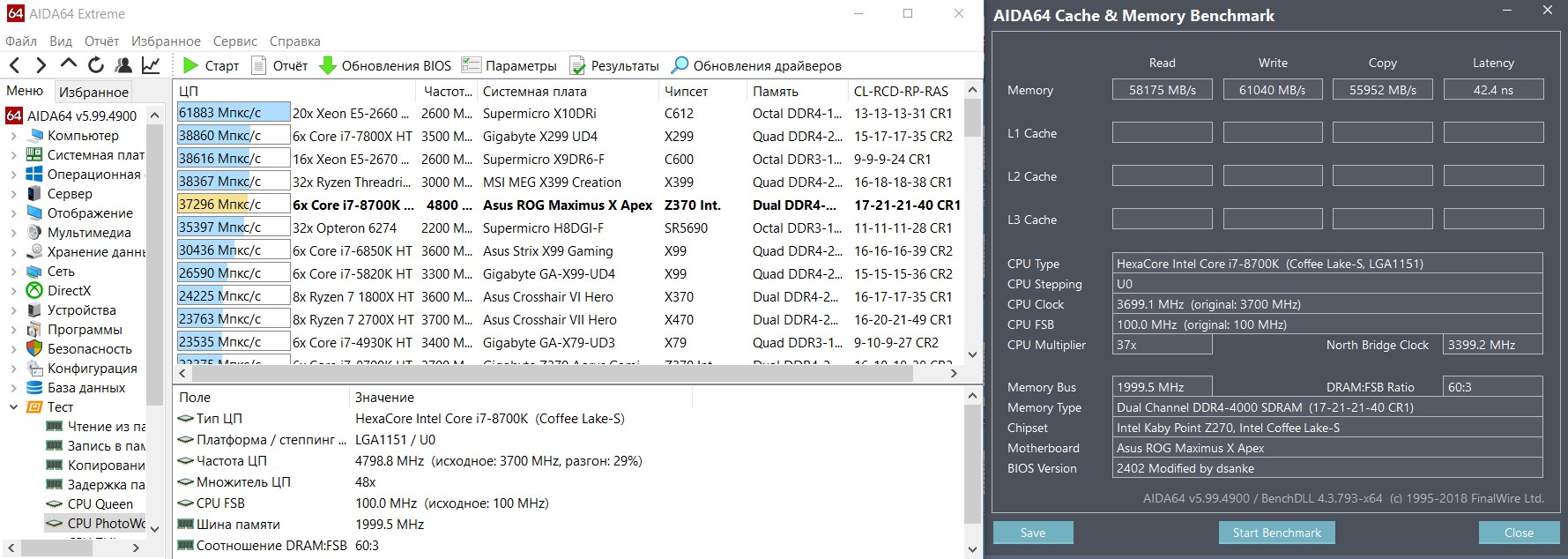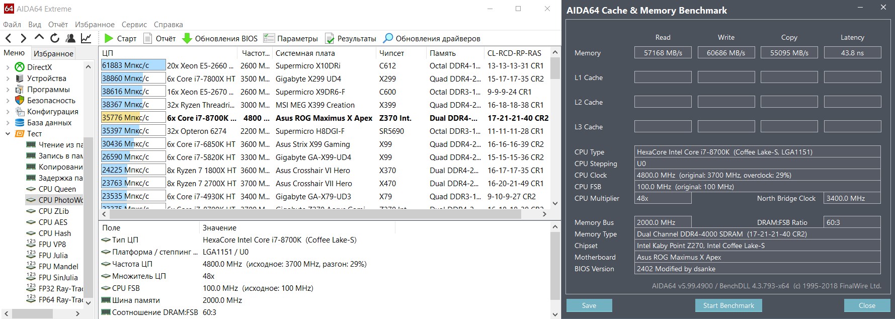 anta777, посмотри мои тайминги, пожалуйста. Делал по твоей таблице, но не 1 в 1, а уменьшал все, что уменьшалось. Установка tREFI из таблицы раным 64083 вводит комп в ступор, т.е. надо обнулять BIOS. Единственное, что не трогал, это tRFC, наобум ставил 734 и работало, сейчас стоит на автомате. Память A-Data XPG SPECTRIX D41 RGB [AX4U32008G16A-DT41] работает на частоте 4100 с таймингами 18-23-23-41, напряжением на ОЗУ 1.5 В, SA=1.23, IO=1.21. Что не так и что еще можно поправить для улучшения результатов?