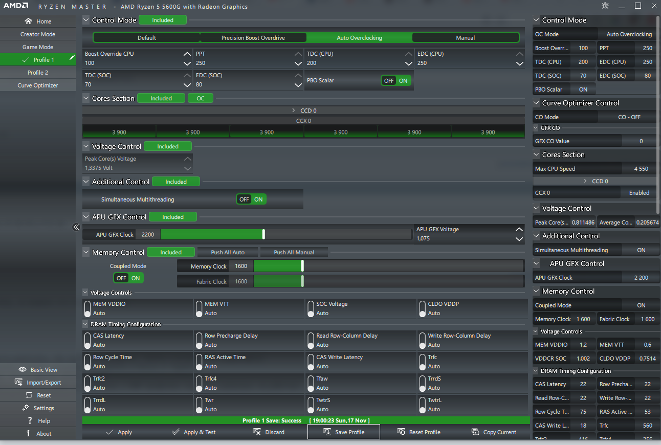 Доброго дня всем! У меня вопрос чайника, решил таки разогнать свою систему, но видимо что-то делаю не так Моя система: Ryzen 5600G Gigabyte B550 GAMING X V2 (rev. 1.3) G Skill Ripjaws V F4-3600C16-16GVKC (2 шт.)