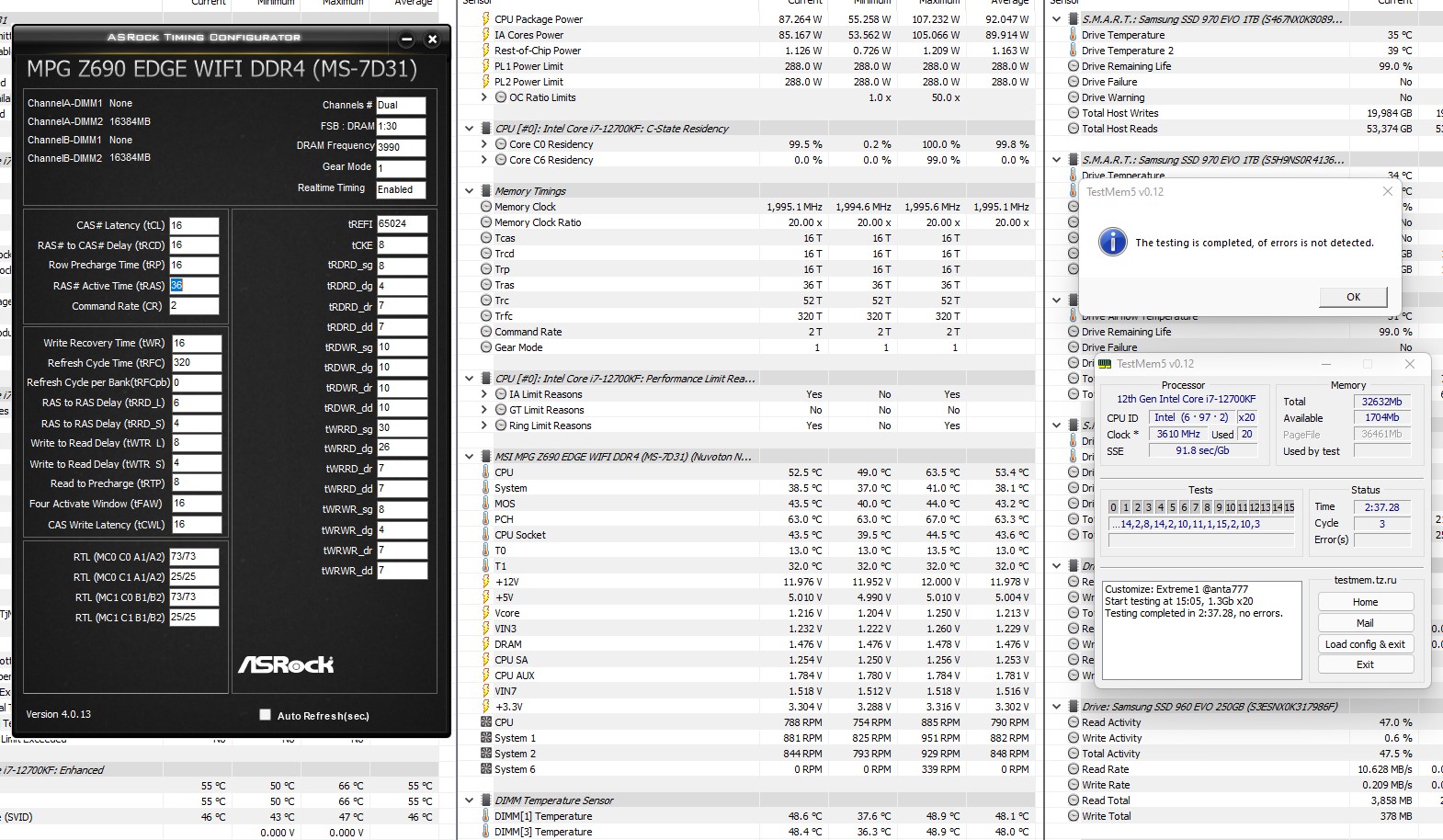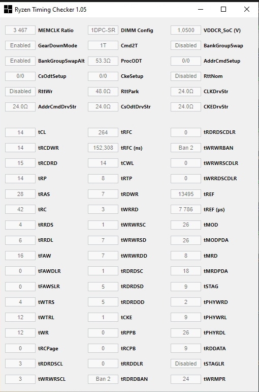 PrintFПока получилось так...Но лэтенси хромает на обе ноги... Не доволен, лучше 3733 с низкими таймингами и лэтенси... Если что, то тут СА 1.23в, VDDQ 1.23v....1.4v memory.