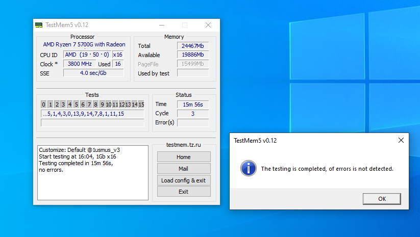7. При желании протестировать память избыточным тестом в TM5 с конфигом 1usmus_v3 меняем количество 3-х циклов в "mt.cfg", "cycles=3" скажем на 8 или более