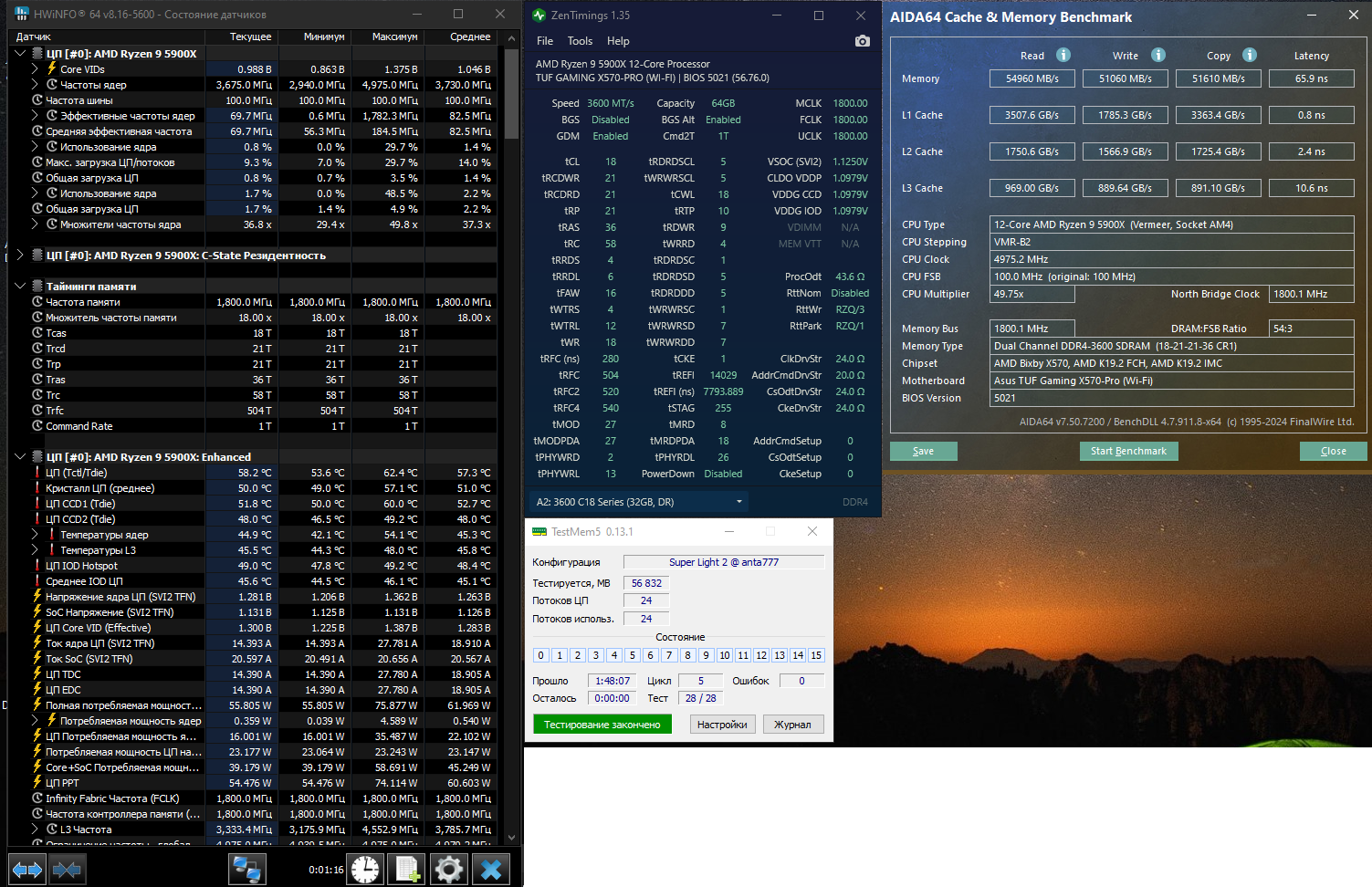 Ну что два месяца активных игр тестов и рабочих задач, настроечка получилось топовая для китайский рефаб планок. Подыграл в сторону понижения только вольтажи на CPU.