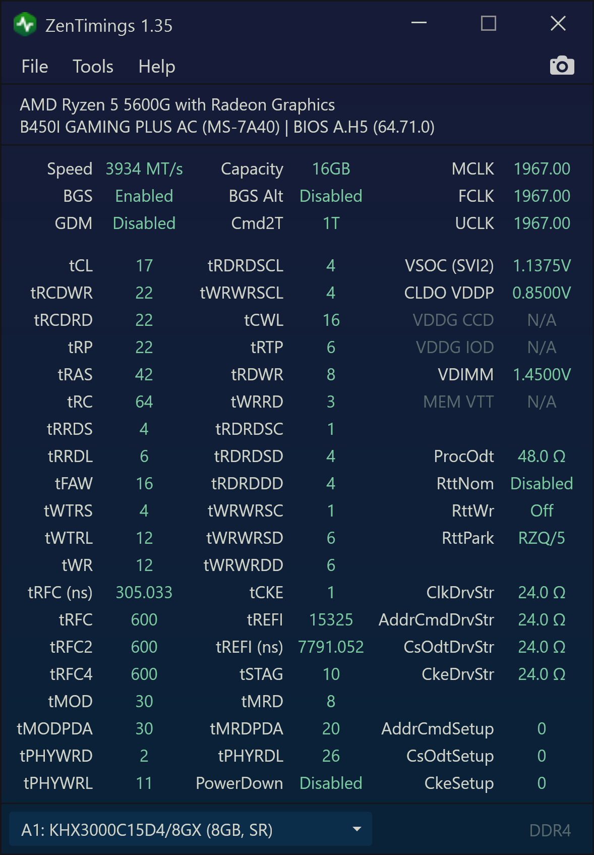 В спальне с 4300G и древними зелёными Samsung C-die получилось так: