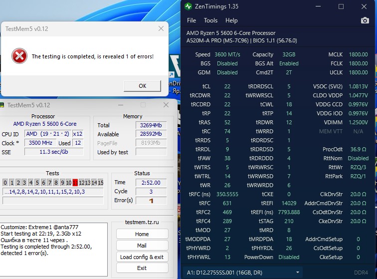 f1limon критично, ошибки памяти = нестабильная работа пк так или иначе не эксперт, но попробовал бы: повысить wrrd до 2-3-4 (DR же, 1 мало, не?) cwl 20 (раз cl 22) vddp 0.9 или 0.85 попробовать поднять напряжение памяти. почему оно такое низкое ? там самсунги, или что, которые вообще напряжение не любят?
