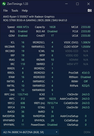 Всем привет. Помогите, пожалуйста, настроить оперативу. Пытался самостоятельно по здешним мануалам, но встрял на первом же этапе - калькуляторе. У меня память KF436C17BBK2 две плашки по 8, чипы вроде SK Hynix. Какие настройки указать в калькулятор? Хочу попробовать сначала через MSI Center загнать параметры.
