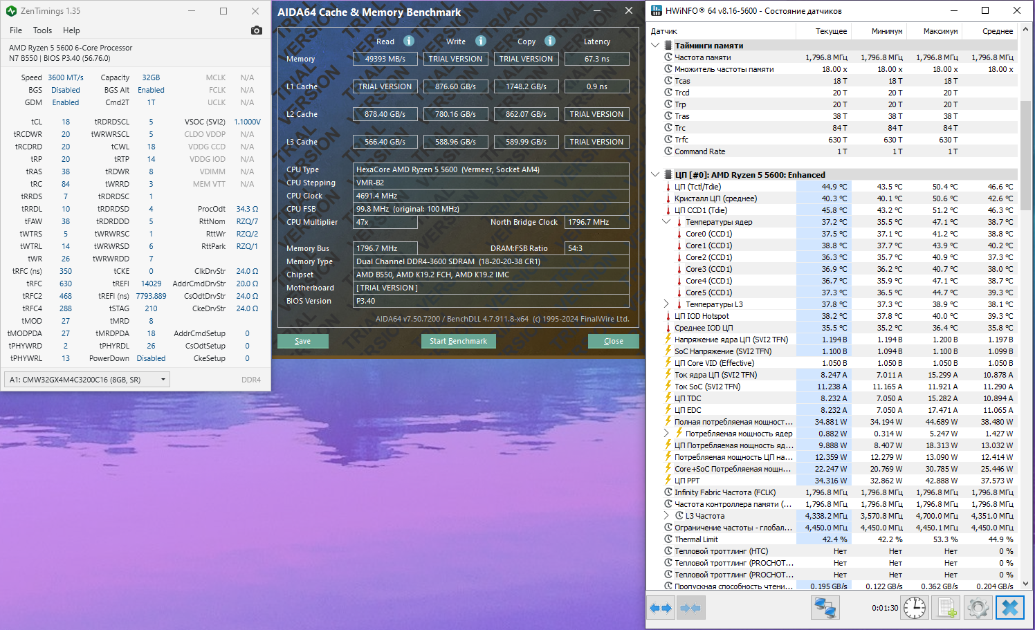 Доброго времени суток, прошу помощи с разгоном оперативной памяти micron e-die. Выставлял на 3733, а 3800 не стал пробовать, так как здесь писали не стоит и 3733 для этого проца достаточно. Тайминги пытался ужать по максимуму, напряжение выставил тоже как здесь советовали на zen3. На что стоит обратить внимание, может какие-то тайминги неправильные по формуле? На этих параметрах testmem5 экстрим и другие проходит без ошибок. Хотел проверить linxом, однако любой прогон, даже на стоке, приводит к разным результатам вычислений (больше 5гфлопс).