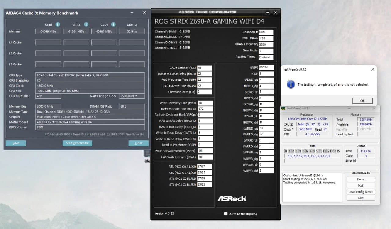 Спасибо, попробую. Но значение 65535 вроде бы неправильное по расчёту? Ещё напряжение снизил с 1,45 до 1,4375 В, ниже уже не даёт, ошибки. Сейчас тестирую на снижение SA, опустился пока до 1,150 В. Жаль, что 1T память на этой плате и с этим процессором не берёт. На ASUS Hero и с 12900K всё стабильно работало и с 1T.