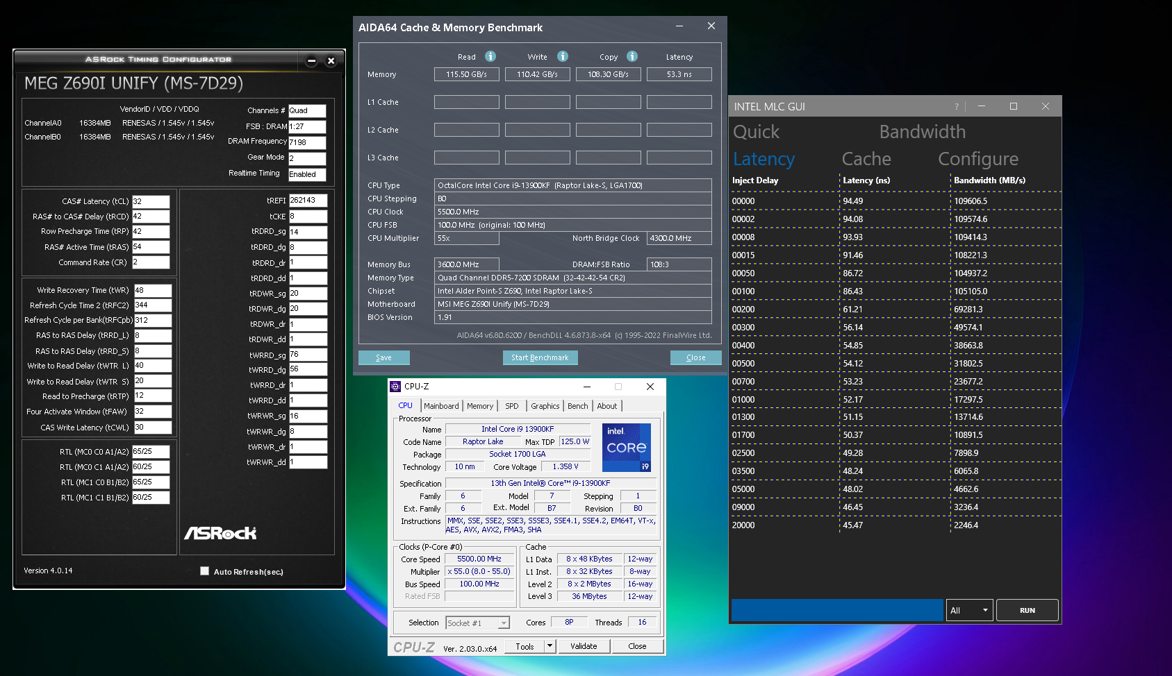 Прогнал млц и аиду на 3 разных конфигах ядер. Ядра и ринг зафиксированы. 55/43/43 8+16 / 8+8 /8+0 Все таки мелкие немного подливают тормозной жидкости в сокет. Напоминаю в 13700к меньше латентность чем у 13900к. Хотел проверить упадет ли латентностью Результат видите. В биненом 13700к больше смысла чем мы думаем.