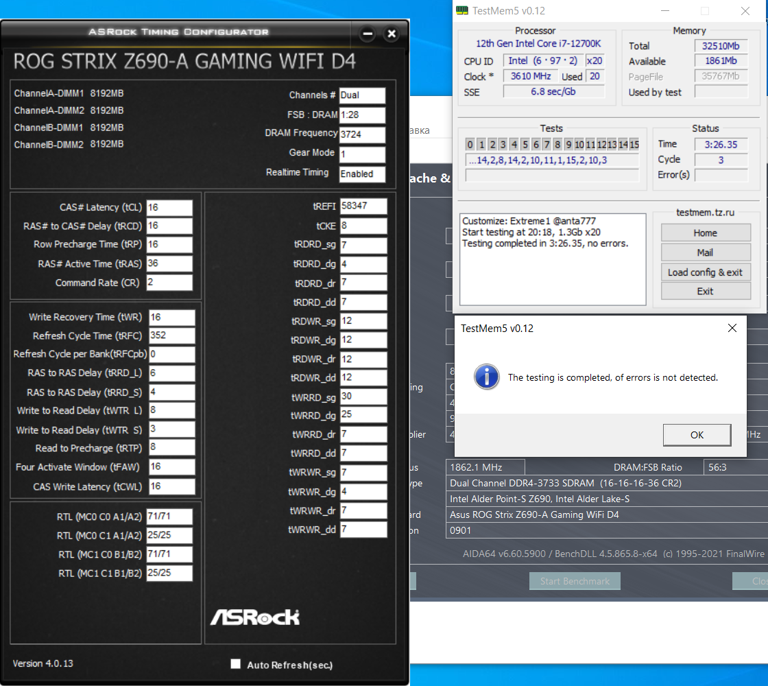 Flexkozla Не пытайтесь ужимать сразу всё по максимуму, и чужие тайминги можно взять за ориентир в дальнейшем, но не факт что они заработают на ваших процессоре+МП+память, всё индивидуально. Пытайтесь с 3866 16-16-16-34 (потом освоитесь, можно и вверх по частоте), всё авто и этих таймингов: