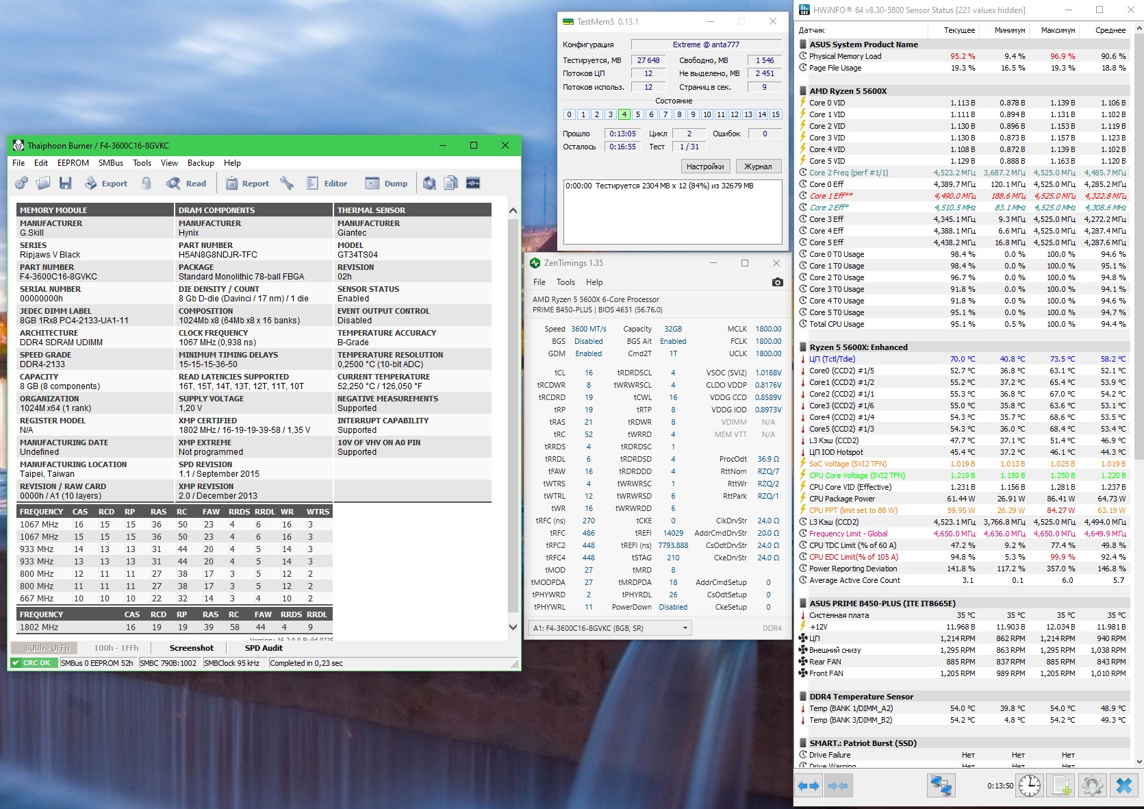 Так что берите на вооружение, ребята. Пользуйтесь, если у вас zen3 и выше, контроллер всё исправит и вытянет. Да, точно. Хотя это если верить тайфун бернеру, может он от балды показывает. У меня с ними связана прикольная история, докупил 2 планки к уже имеющимся двум спустя 4 года, так вот на старых планках есть термодатчик, температурку мониторю, а на новых - нет. Удешивили(