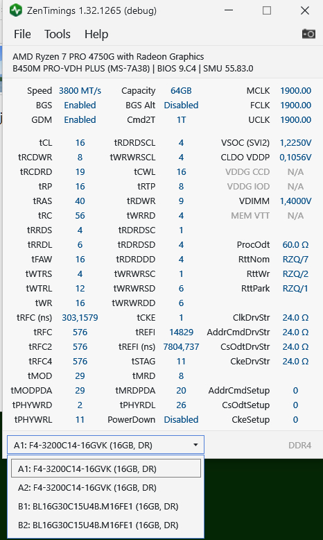 Сменил МП на B550 Tomahawk, и настраиваю теперь заново память. По таймингам получилось все тоже самое, что частоту 3733 выставил. Далее у меня 2 варианта: 1) Остаться на 3733 и отключить GDM, пробовать CL 15 2) Пробовать с текущими таймингами частоту 3800